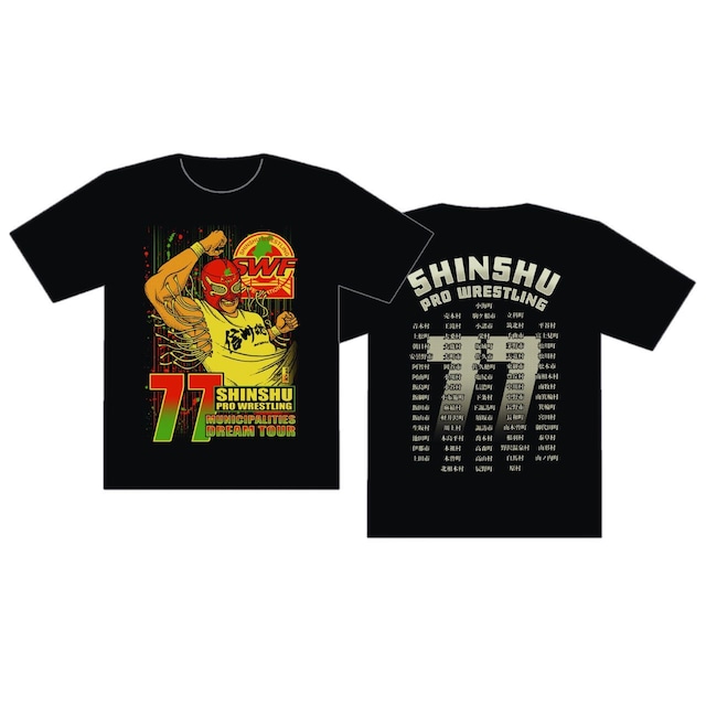 信州魂の文字はグレート☆無茶が魂を込めて書いた文字です 黒T シャツに文字が白 黄Tシャツに文字が黒(グレート☆無茶選手が試合中に着用しているものと同じです) ※類似品にご注意ください(某驚安店) 商品名:『信州魂』Tシャツ(黒、黄) 信州人魂を感じる一品です! 心を燃やす言葉が生きる!『信州魂』の文字が、グレート☆無茶選手の手書きによって生まれました。黒Tシャツには白で力強く、黄Tシャツには黒でクールに彩られています。これは、グレート☆無茶選手が試合中に愛用しているスタイルそのものです! さらに、これらのTシャツは他にない特別なデザインで、ファン必携のアイテム!同じようなものに惑わされず、ぜひ本物を手に入れてください。類似品にご注意を! 数量限定での販売となりますので、早めのご購入をおすすめします! お洒落に決めて、あなたの信州魂を周囲にアピールしましょう!